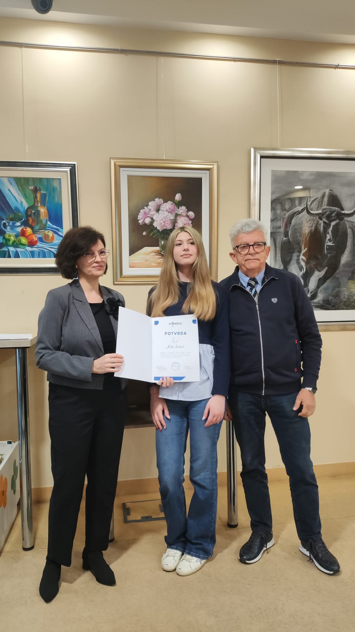 13. travnja 2026.S ponosom vas obavještavamo da je izložba radova talentiranih polaznika likovne škole Pučkog otvorenog učilišta Križevci svečano otvorena! Uvodne riječi na otvorenju izložbe brojnim posjetiteljima uputili su ravnateljica POU Križevci Željka Šunjić, profesor Zoran Homen te pročelnik Sandro Novosel.
